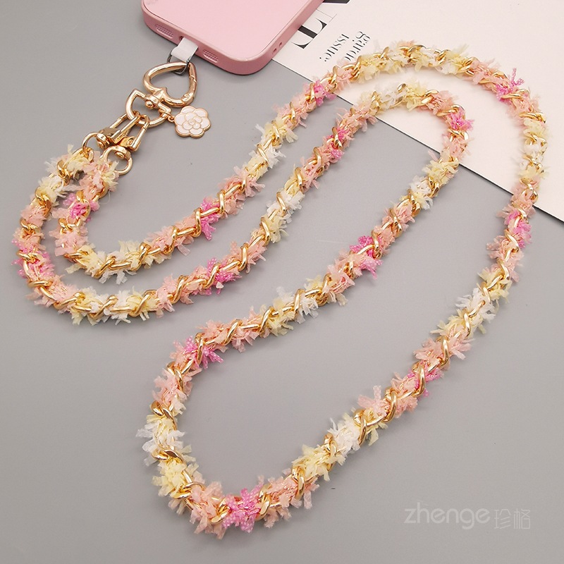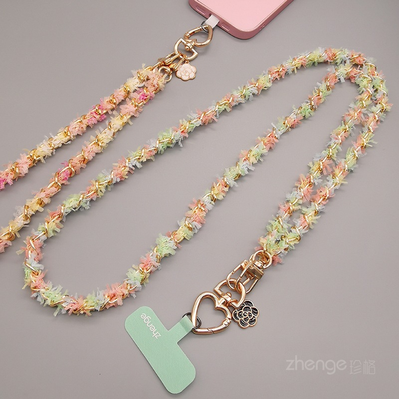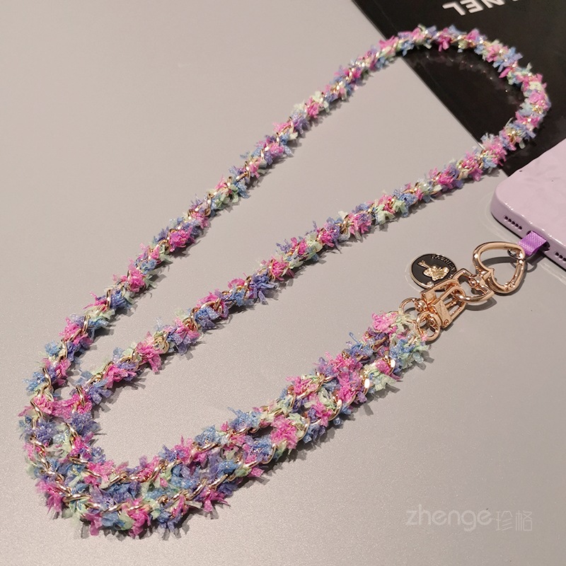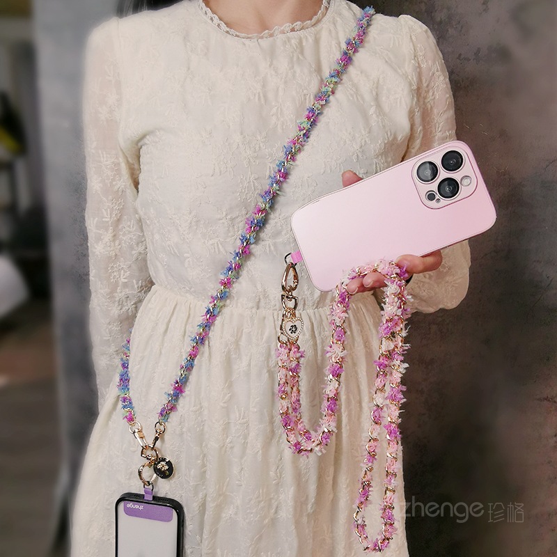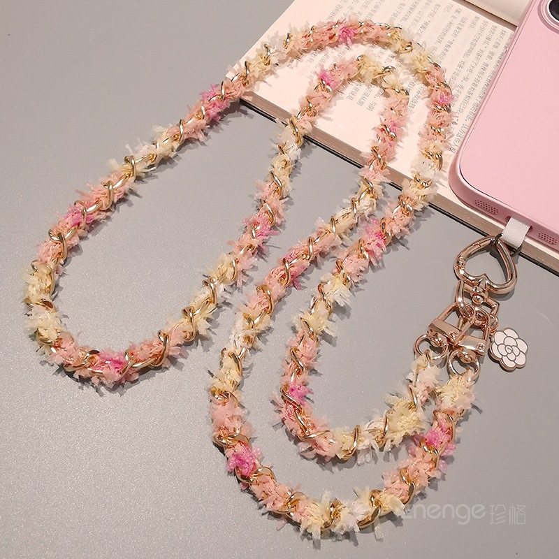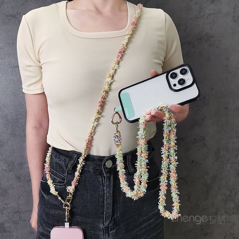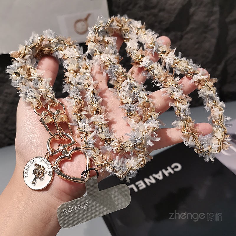 Wholesale metal button chain mobile phone lanyard, long crossbody style, trendy and niche outdoor mobile phone strap for travel.