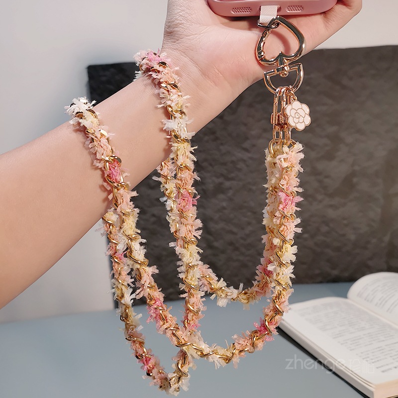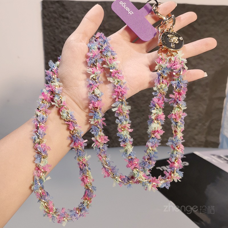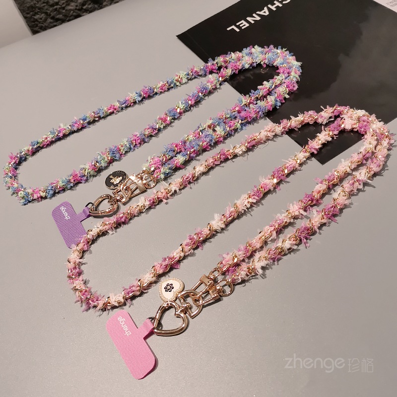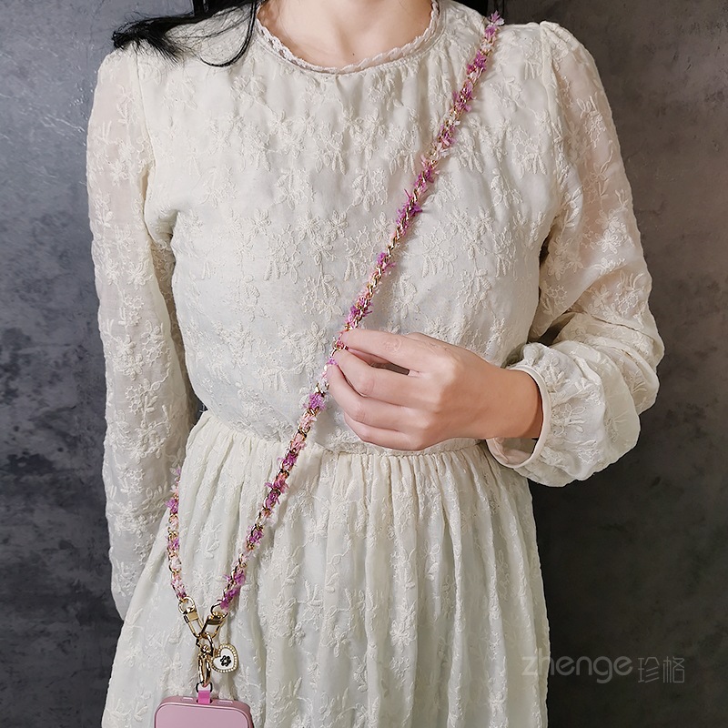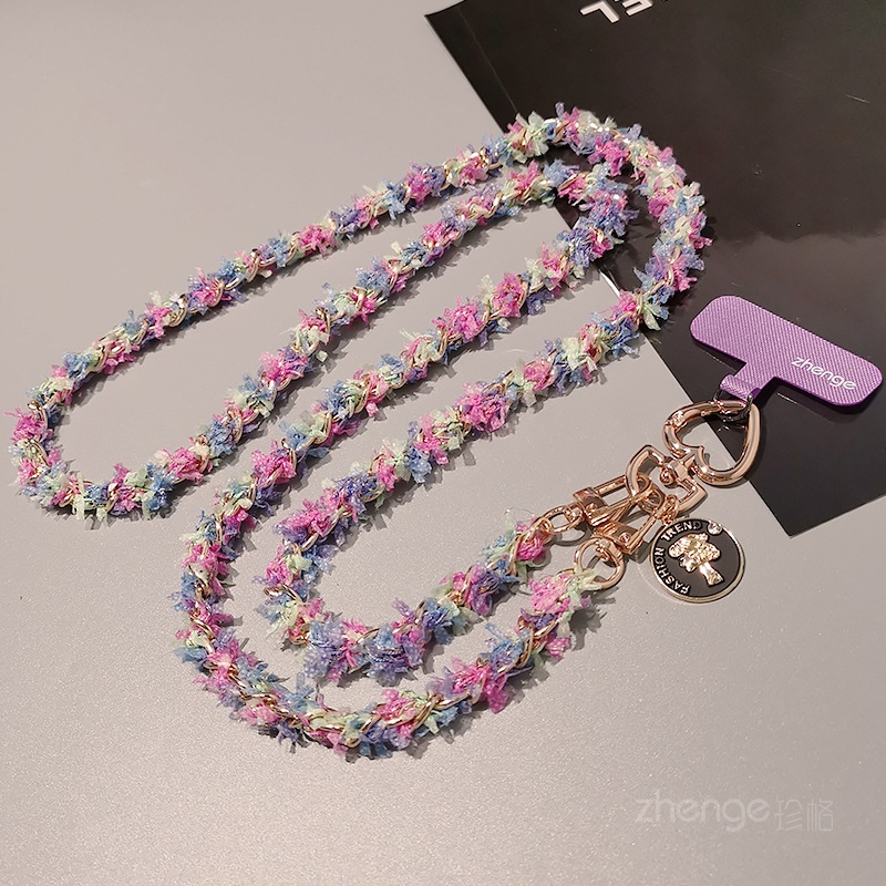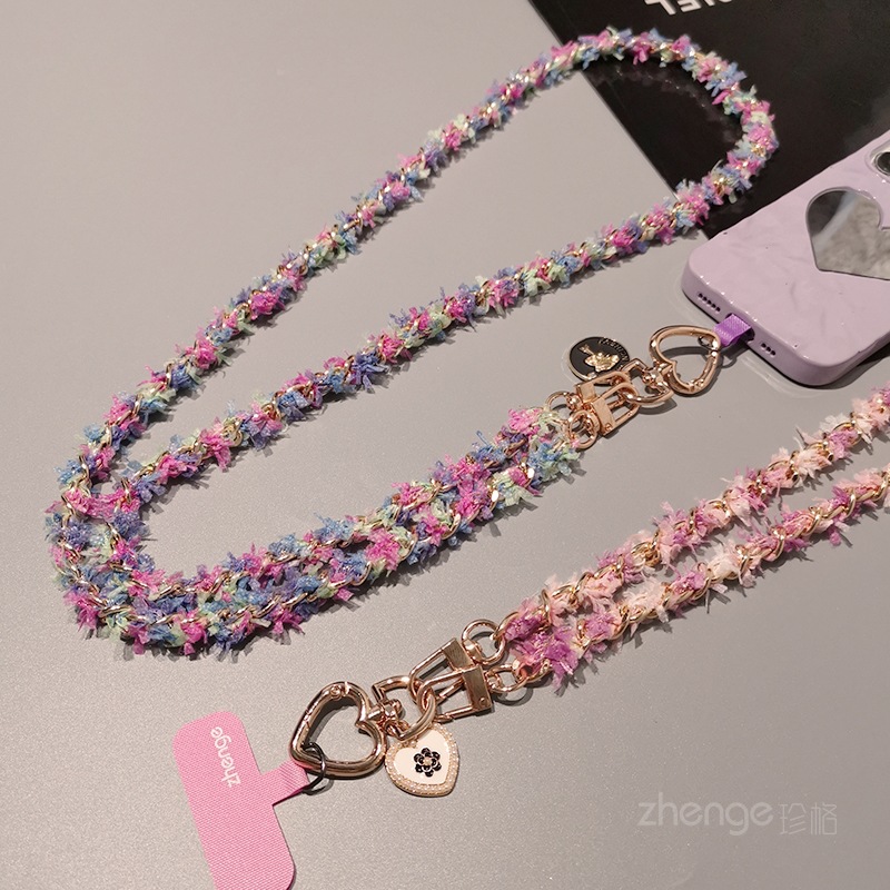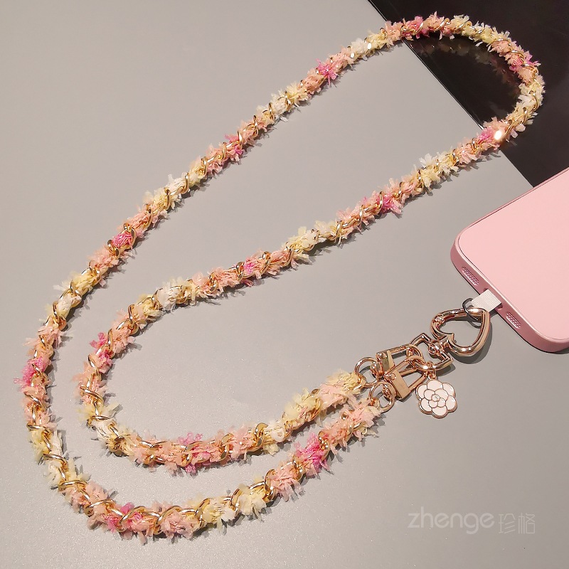 Wholesale metal button chain mobile phone lanyard, long crossbody style, trendy and niche outdoor mobile phone strap for travel.