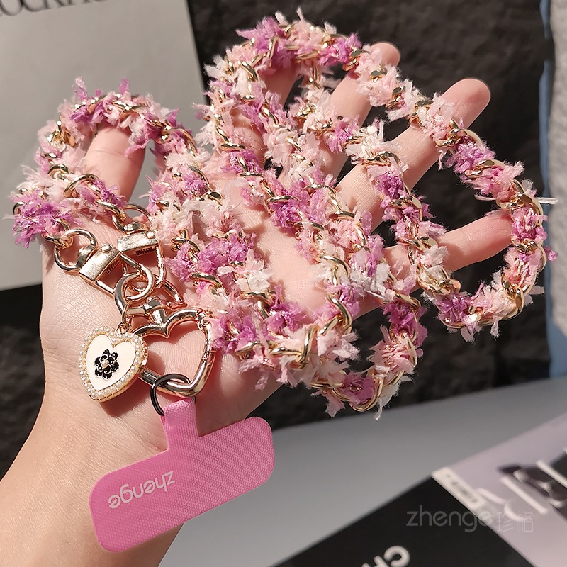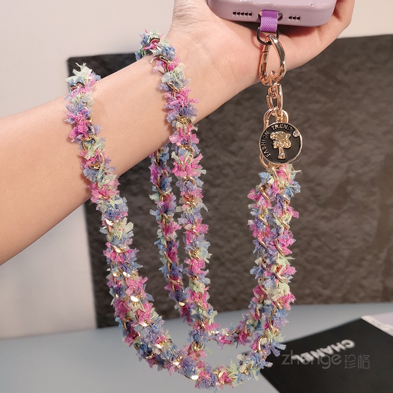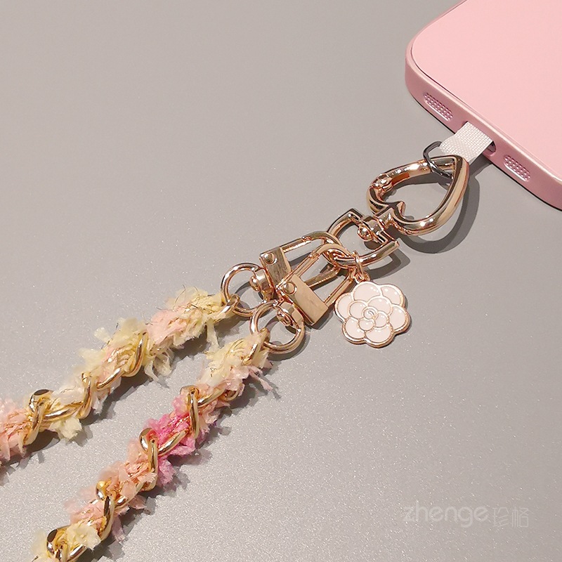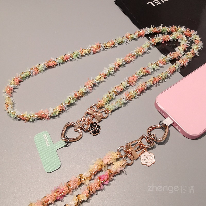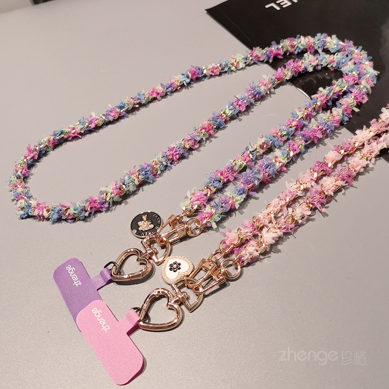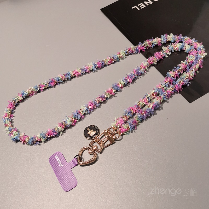Home > Wholesale fashion keychains > Wholesale metal button chain mobile phone lanyard, long crossbody style, trendy and niche outdoor mobile phone strap for travel.