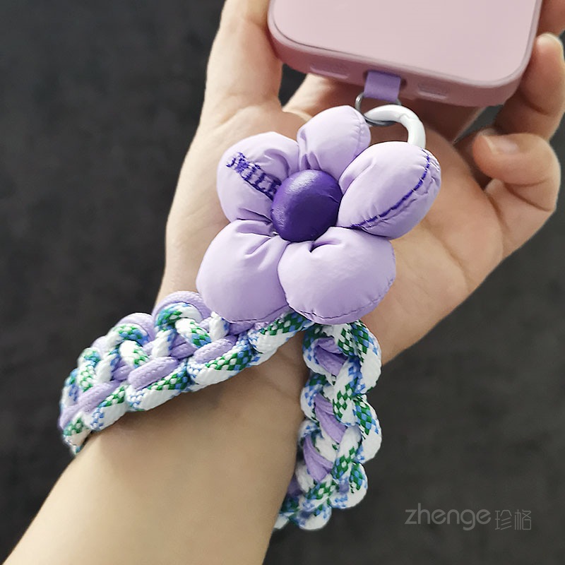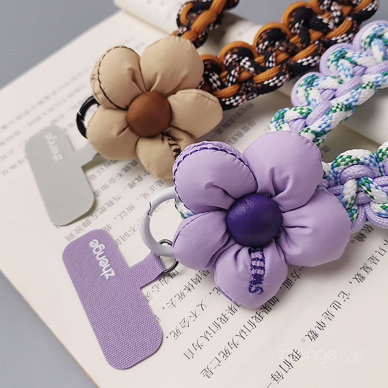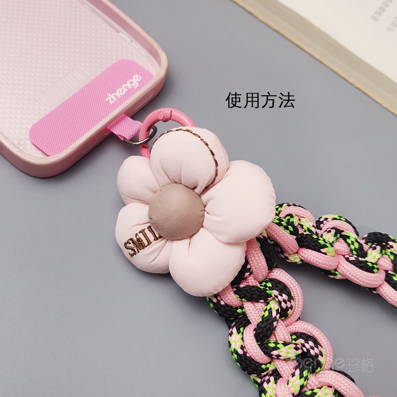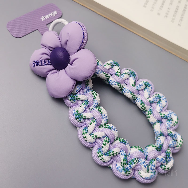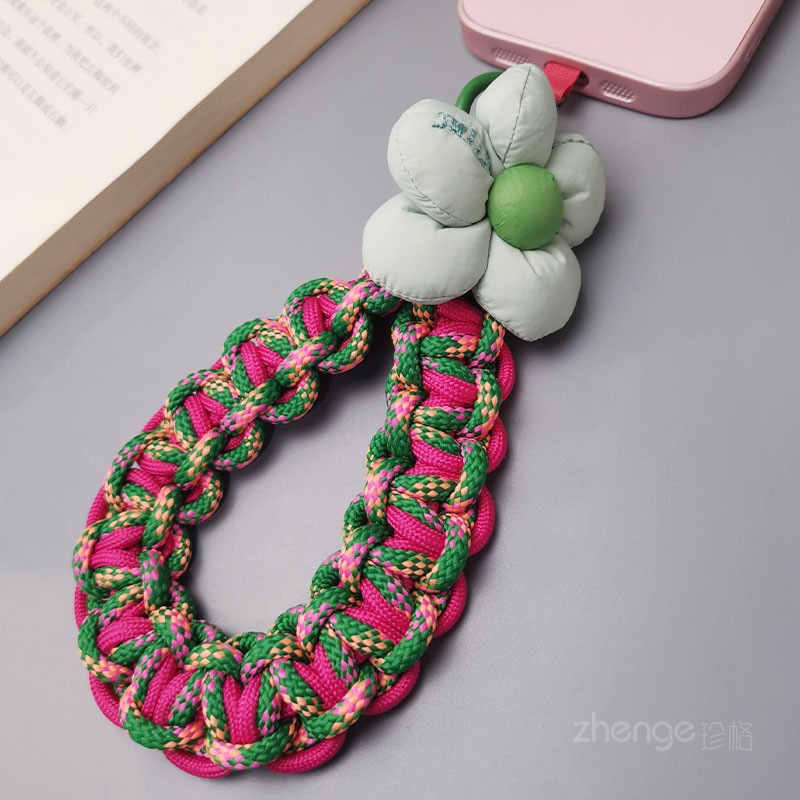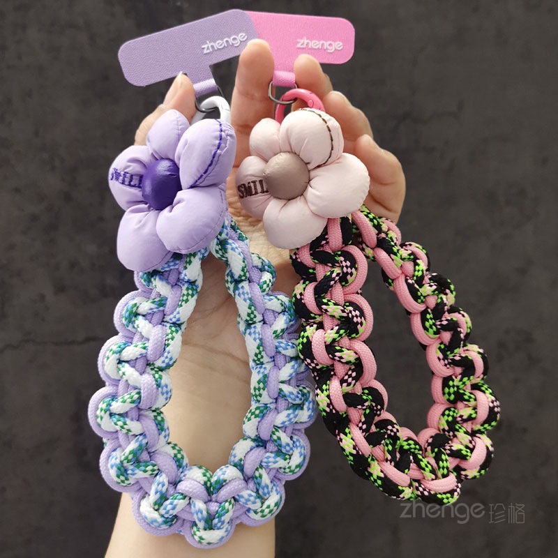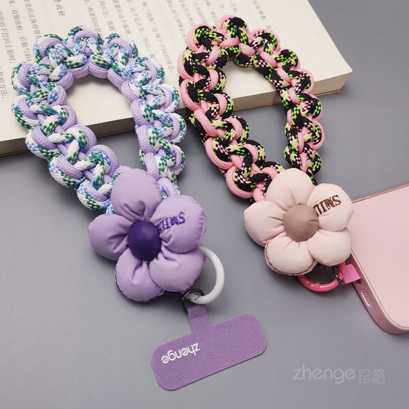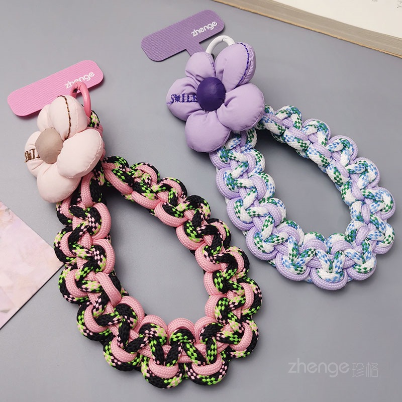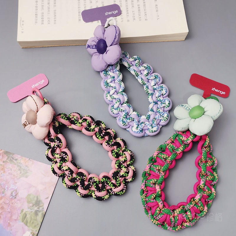 Home > Wholesale fashion keychains > Wholesale mobile phone lanyards, flower-woven wristbands, short, trendy women's outdoor anti-loss wristbands, travel and hiking ropes.