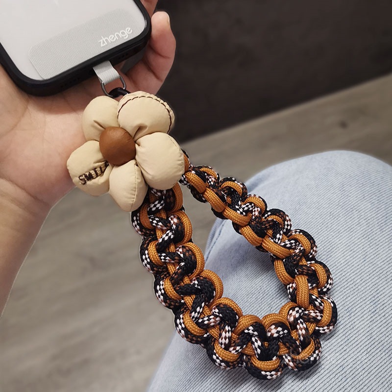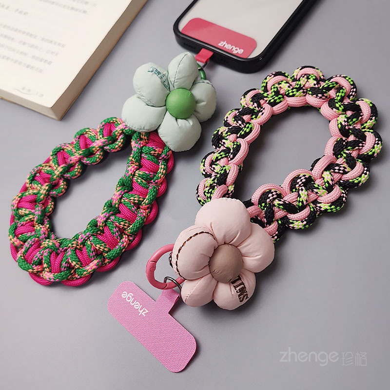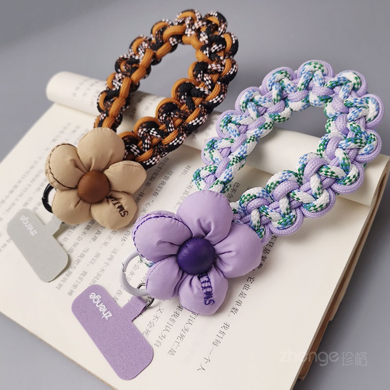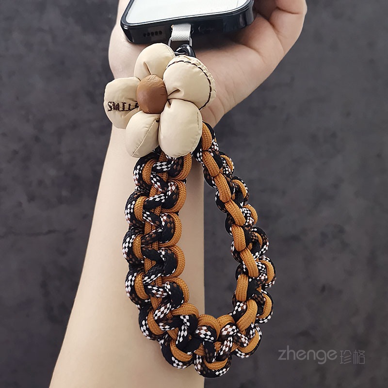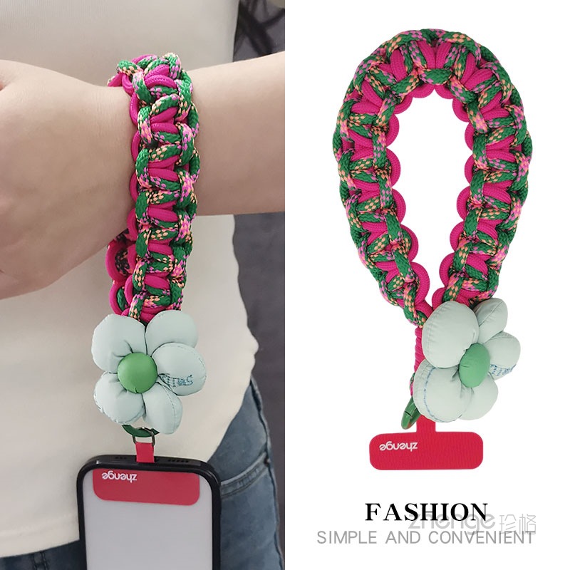 Wholesale mobile phone lanyards, flower-woven wristbands, short, trendy women's outdoor anti-loss wristbands, travel and hiking ropes.