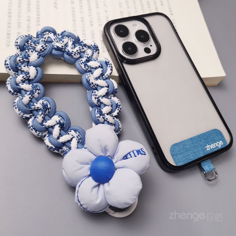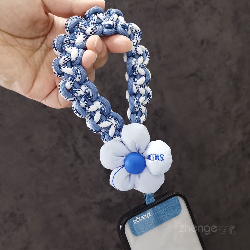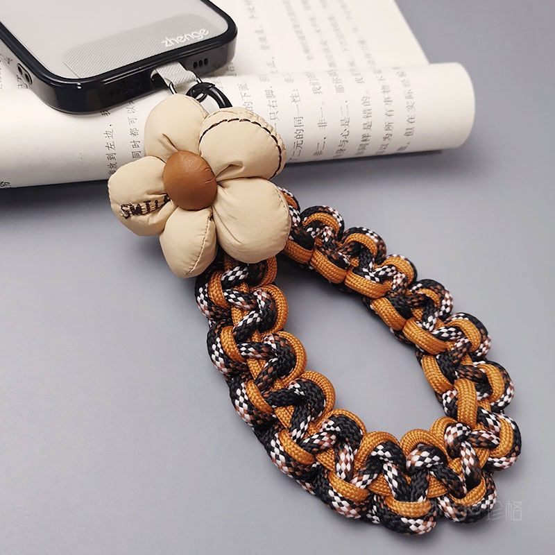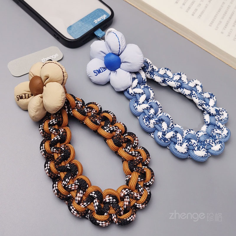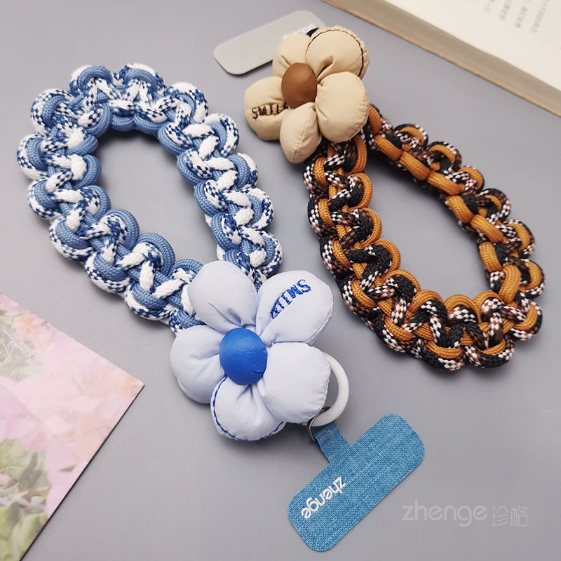 Wholesale mobile phone lanyards, flower-woven wristbands, short, trendy women's outdoor anti-loss wristbands, travel and hiking ropes.